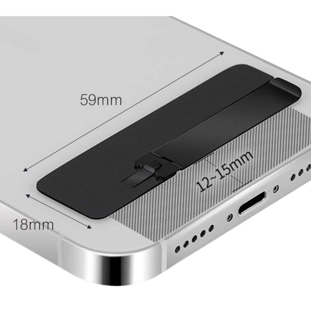 Compact Design: With a thickness ranging from 0.6mm to 1mm, our cell phone kickstand is one of the smallest and thinnest stands on the market, offering both lightness and convenience. Its adhesive backing easily attaches to phone cases, providing reliable support without the risk of falling off or breaking.